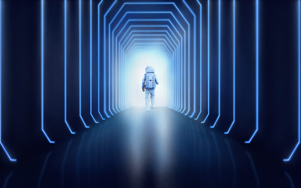 Woman’s hand presenting futuristic technology digital remix